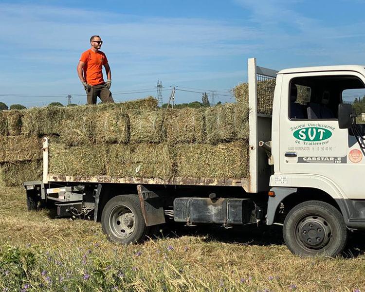 Nos équipes ont créé des ballots de paille avec de l’herbe fauchée.