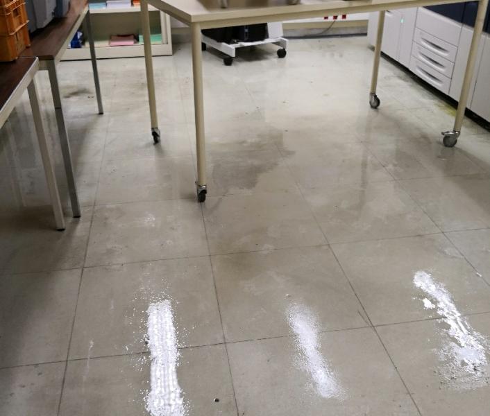 Cette intervention a été réalisée un samedi en dehors des heures d’utilisation des locaux, car elle nécessite un temps de séchage avant de pouvoir remarcher sur le sol.