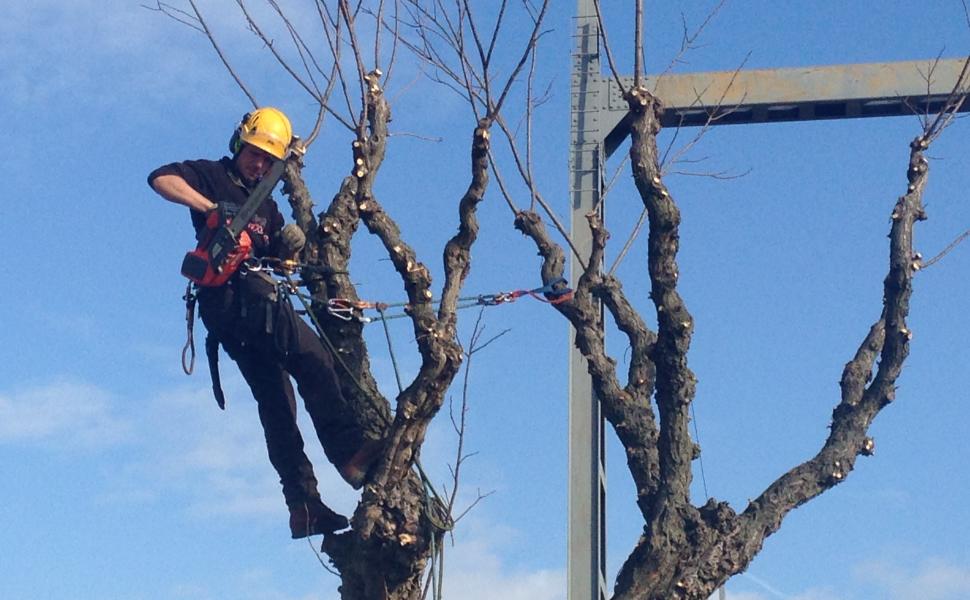 Retrait des bois et déchets verts à l’aide d’un camion grue une fois l’arbre élagué et abattu.