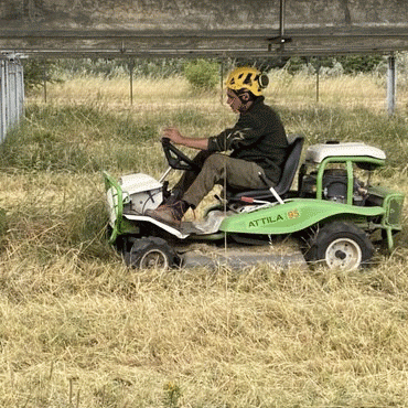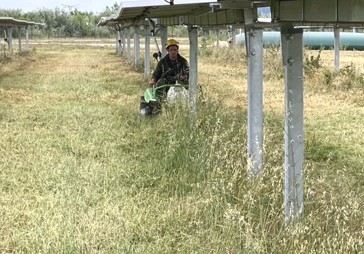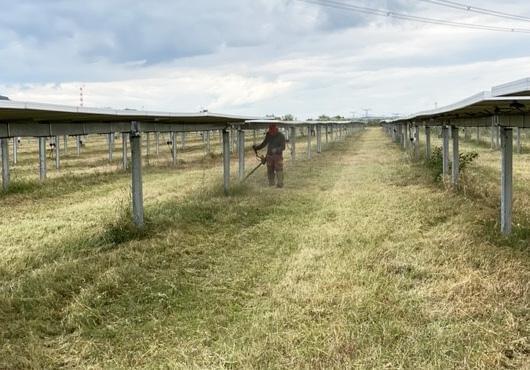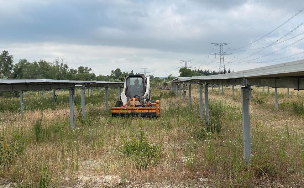 L'entretien des parcs photovoltaïques est important pour la performance des panneaux. Le fauchage des herbes entre et sous les panneaux permet d'éviter de les endommager et de maximiser leur performance.