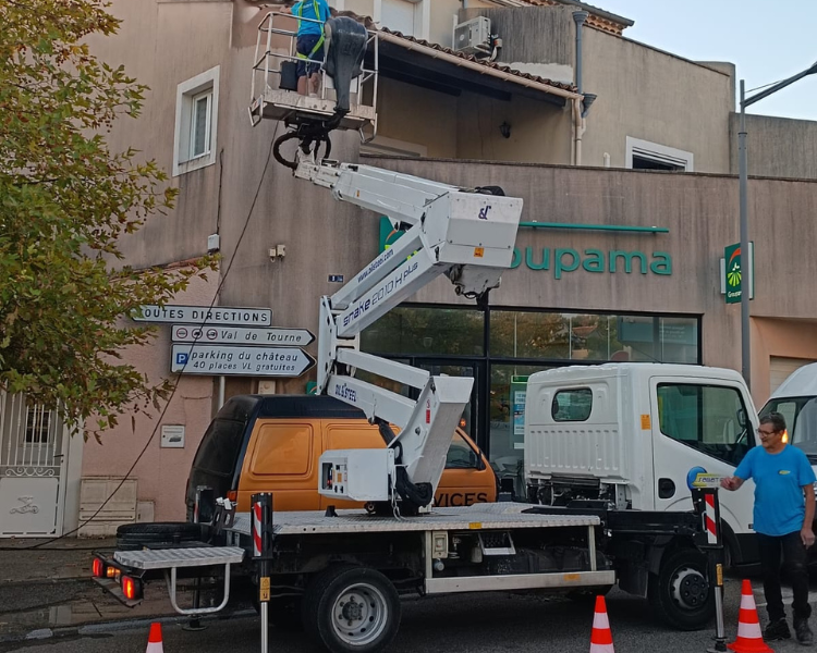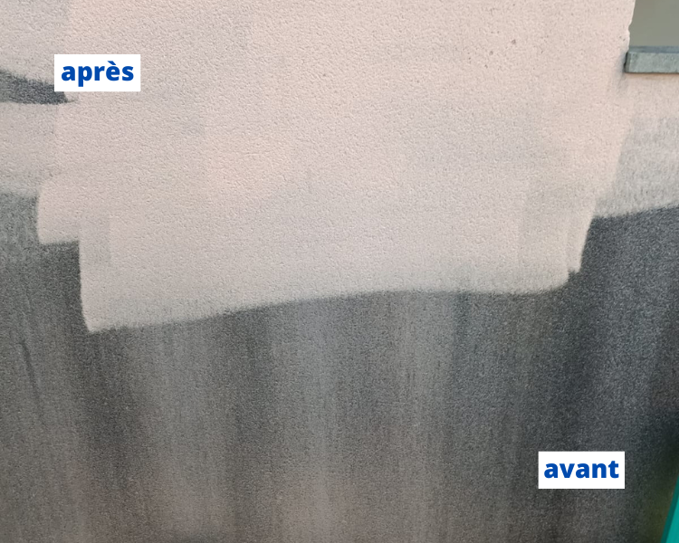 Durant toute une journée, nos trois agents se sont relayés afin de nettoyer cette façade grâce à un processus haute pression, notre cuve de 1000 litres pour être autonome en eau et notre nacelle !