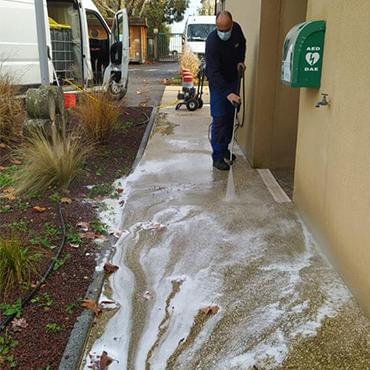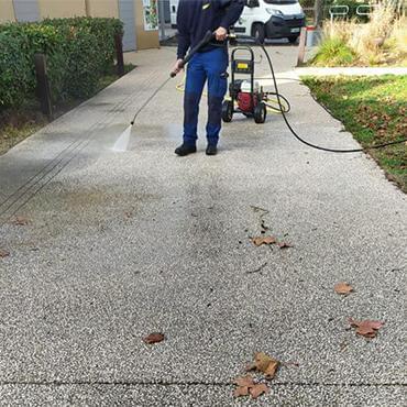 Les équipes du Groupe Sabatier ont réalisé le nettoyage d'un parvis à l'aide d'une machine à haute pression dans le Vaucluse.