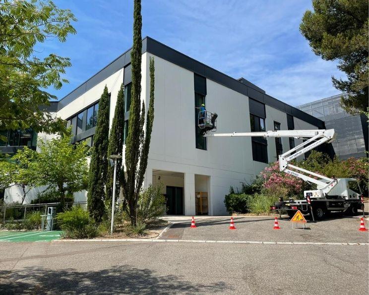 Ce mois-ci, 5 de nos agents d'entretien se sont mobilisés le temps d'une journée pour remettre en état l'intégralité des vitres d'un établissement dans le Parc de la Duranne à Aix-en-Provence.