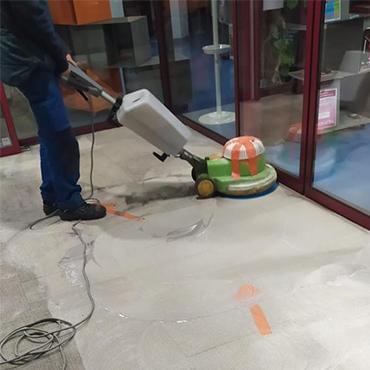 - Récurage du sol à l’aide d’une monobrosse basse vitesse
