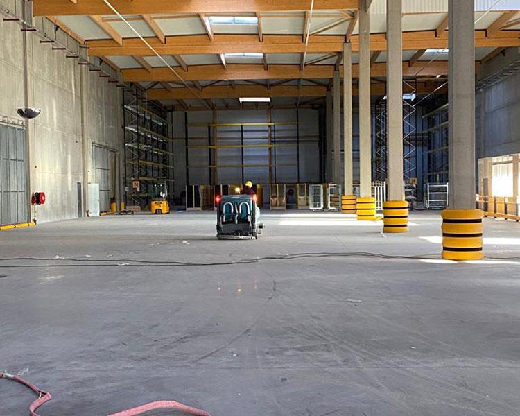 Nos équipiers ont tout d'abord procédé au récurage et au balayage des sols avant de passer au lavage à l'aide de la Balayeuse laveuse M20.