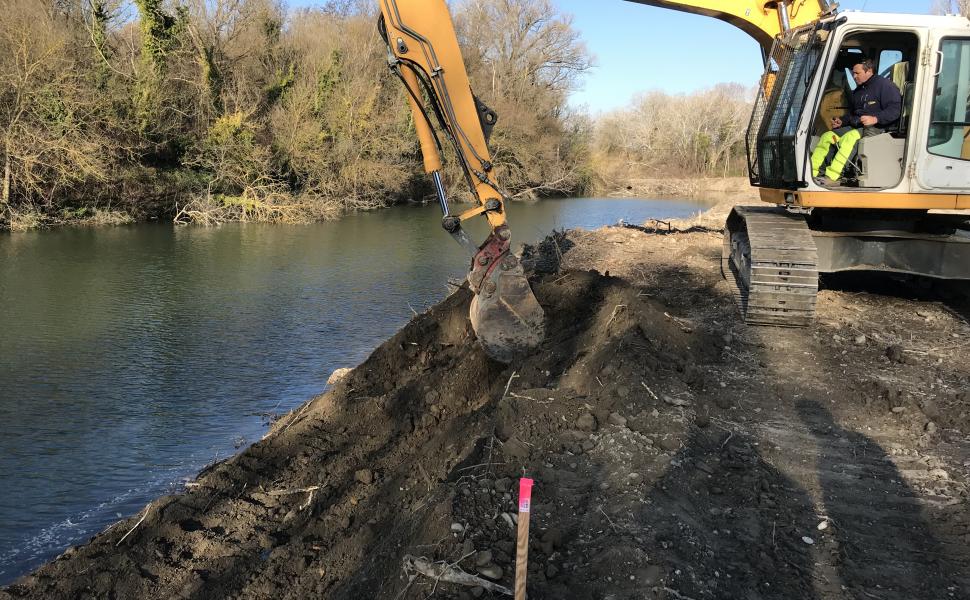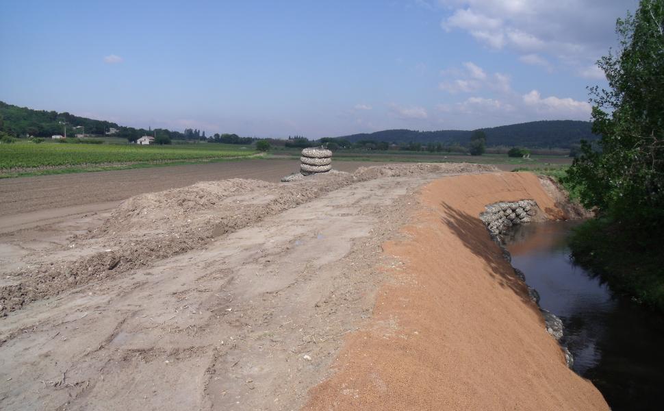 Restauration de berges à l’aide de filets souples remplis de cailloux (filets tex) sur un linéaire de 70m.